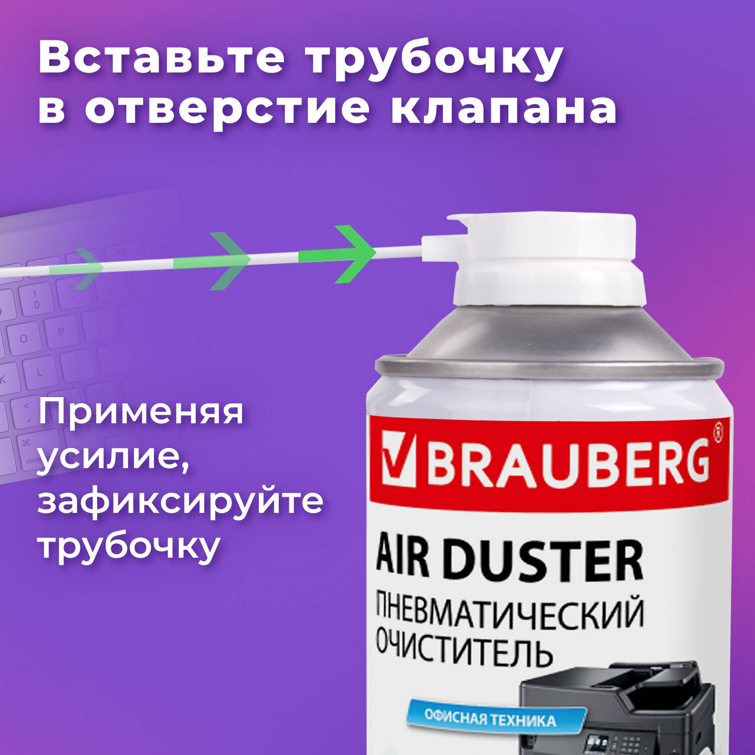 Отзывы на Пневматический очиститель/баллон со сжатым воздухом для чистки компьютера, ноутбука, оргтехники Brauberg, 520 мл, 513287