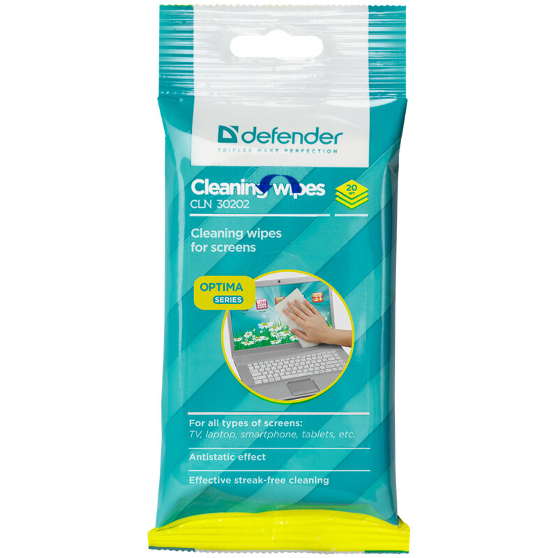 Салфетки чистящие влажные Defender 30202, для мониторов, в мягкой упаковке, 20шт. (CLN 30202) информация: