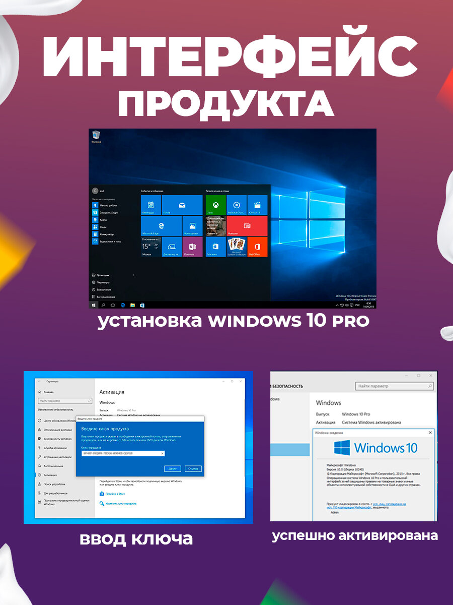 Ключ Windows 10 Pro OEM - бессрочная лицензия, привязка к устройству на 1 ПК информация: