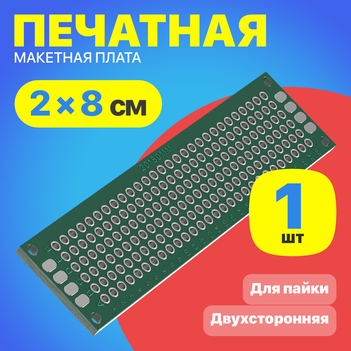 Отзывы на Печатная макетная плата 2 x 8 см двухсторонняя для пайки GSMIN PCB1 (Зеленый)