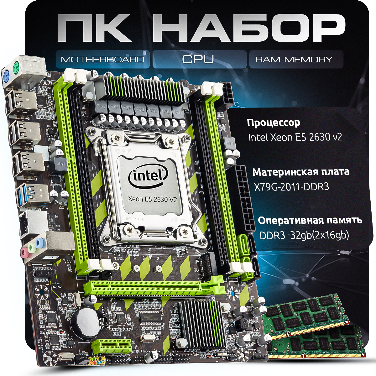 10 цен на Материнская плата X79 LGA2011, процессор Intel Xeon E5 2630 V2, память 32 ГБ 2х16 ГБ DDR3 ECC