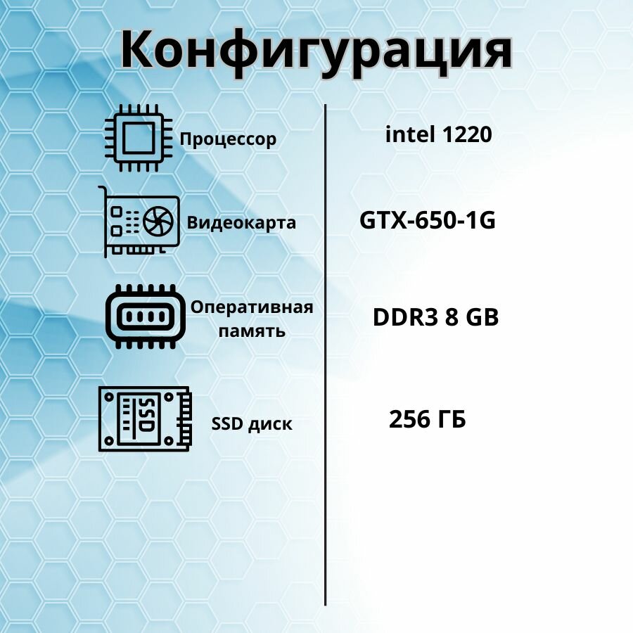 Компьютер для игр и учебы intel i5/GTX-650/8GB/SSD-256/Монитор-22” информация: