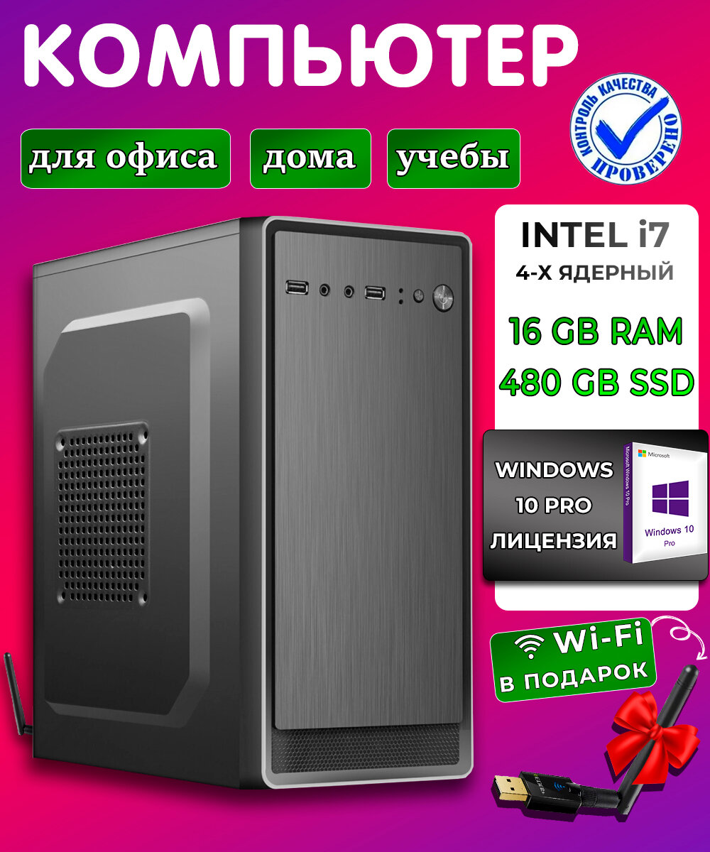 Системный блок Intel core i7-3770, 3.4 ГГц, RAM 16Gb, SSD 480Gb, Windows 10Pro, Wi-Fi офисный, для работы, для учебы, для дома информация: