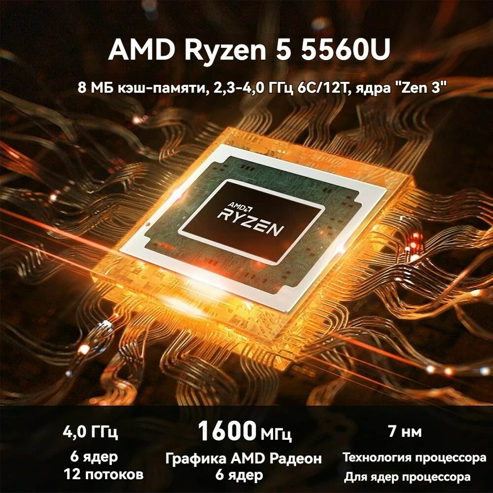 Мини ПК Beelink SER5 (AMD Ryzen 5 5560U 6C/12T До 4,0 ГГц, RAM 8 ГБ, SSD 500 ГБ, AMD Radeon Graphics, Windows 11 Pro), WiFi 6 BT5.2 черный информация: