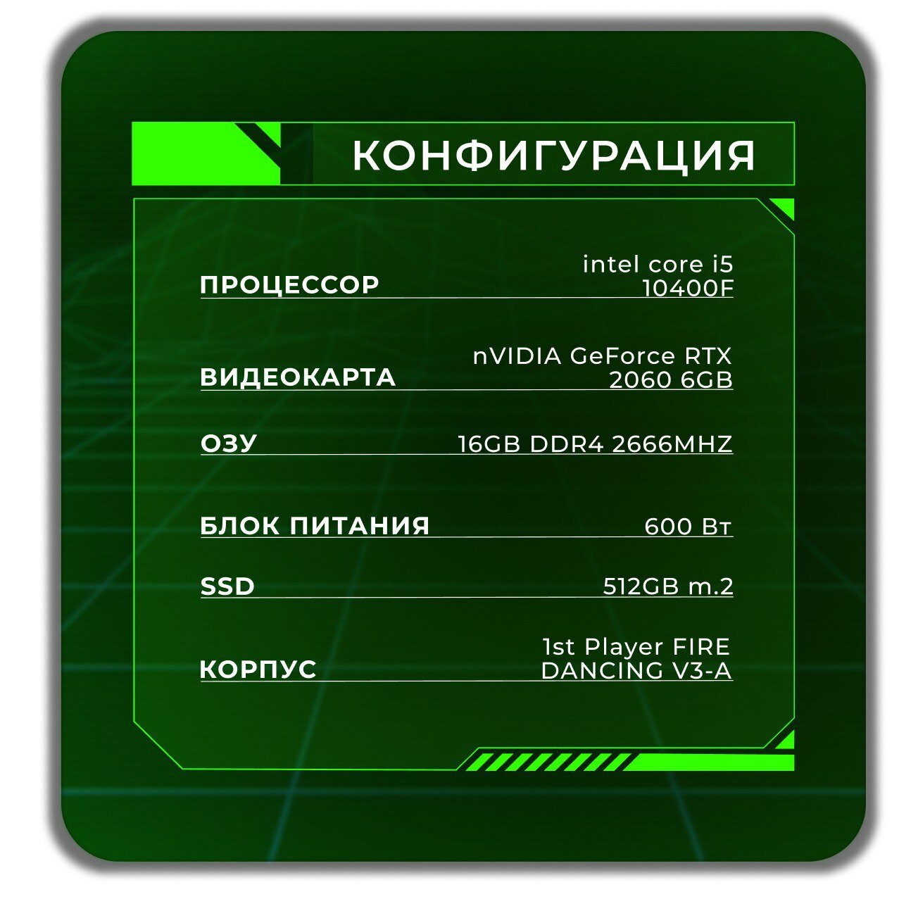 Игровой компьютер, системный блок Intel Core i5-10400F / 16GB RAM / 512GB SSD M.2 / NVidia GeForce RTX 2060 6GB информация: