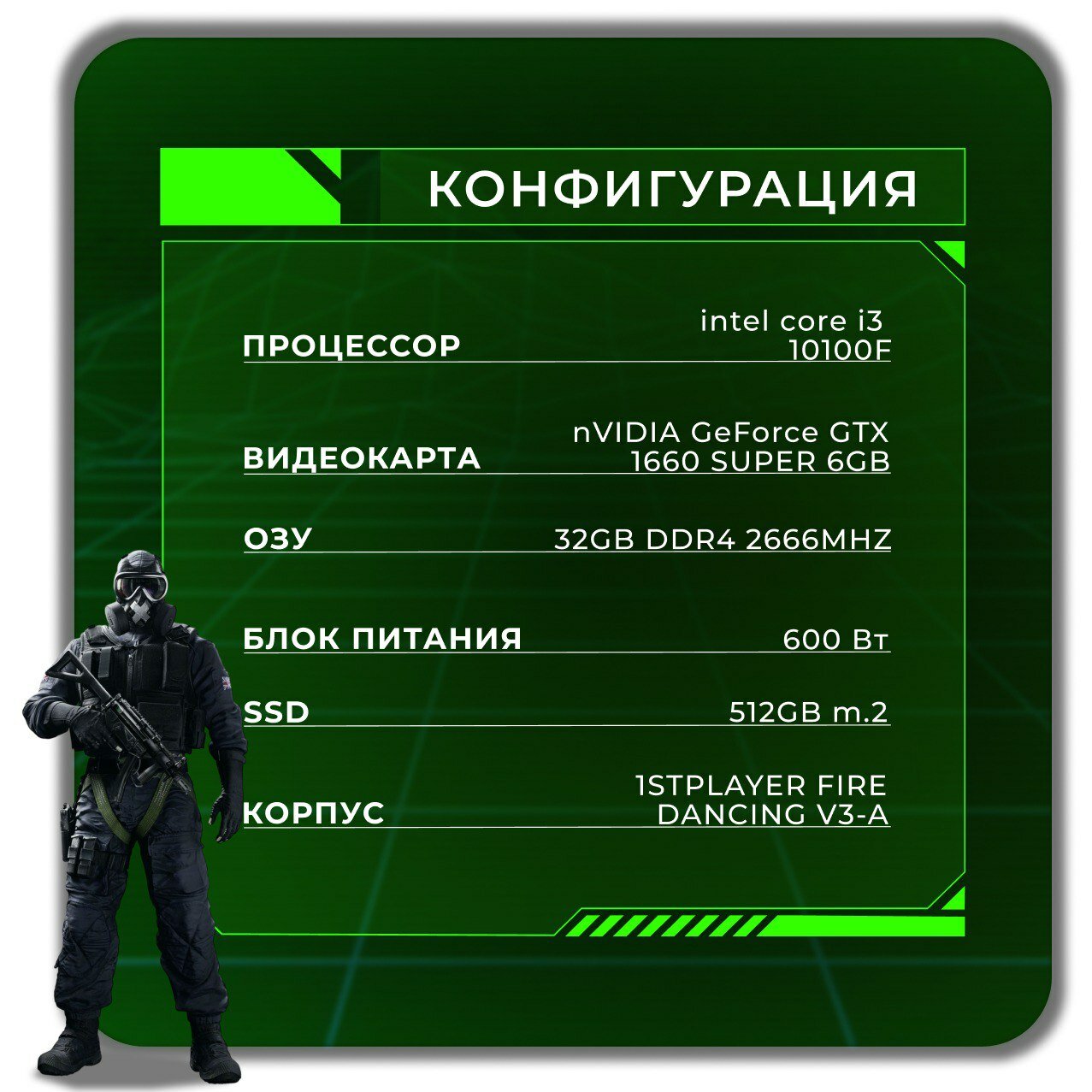 Игровой компьютер, системный блок Intel Core i3-10100F / 32GB RAM / 512GB SSD M.2 / NVidia GeForce GTX 1660 Super 6GB информация:
