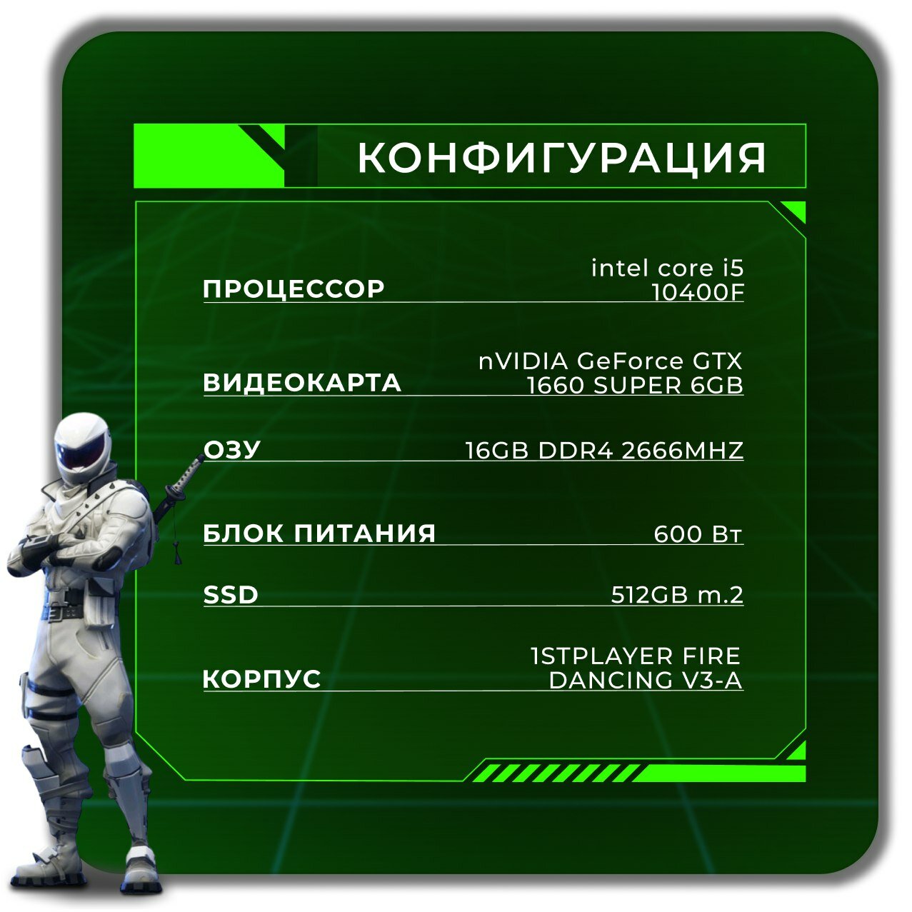 Игровой компьютер, системный блок Intel Core i5-10400F / 16GB RAM / 512GB SSD m.2 / NVidia GTX 1660 Super 6GB информация: