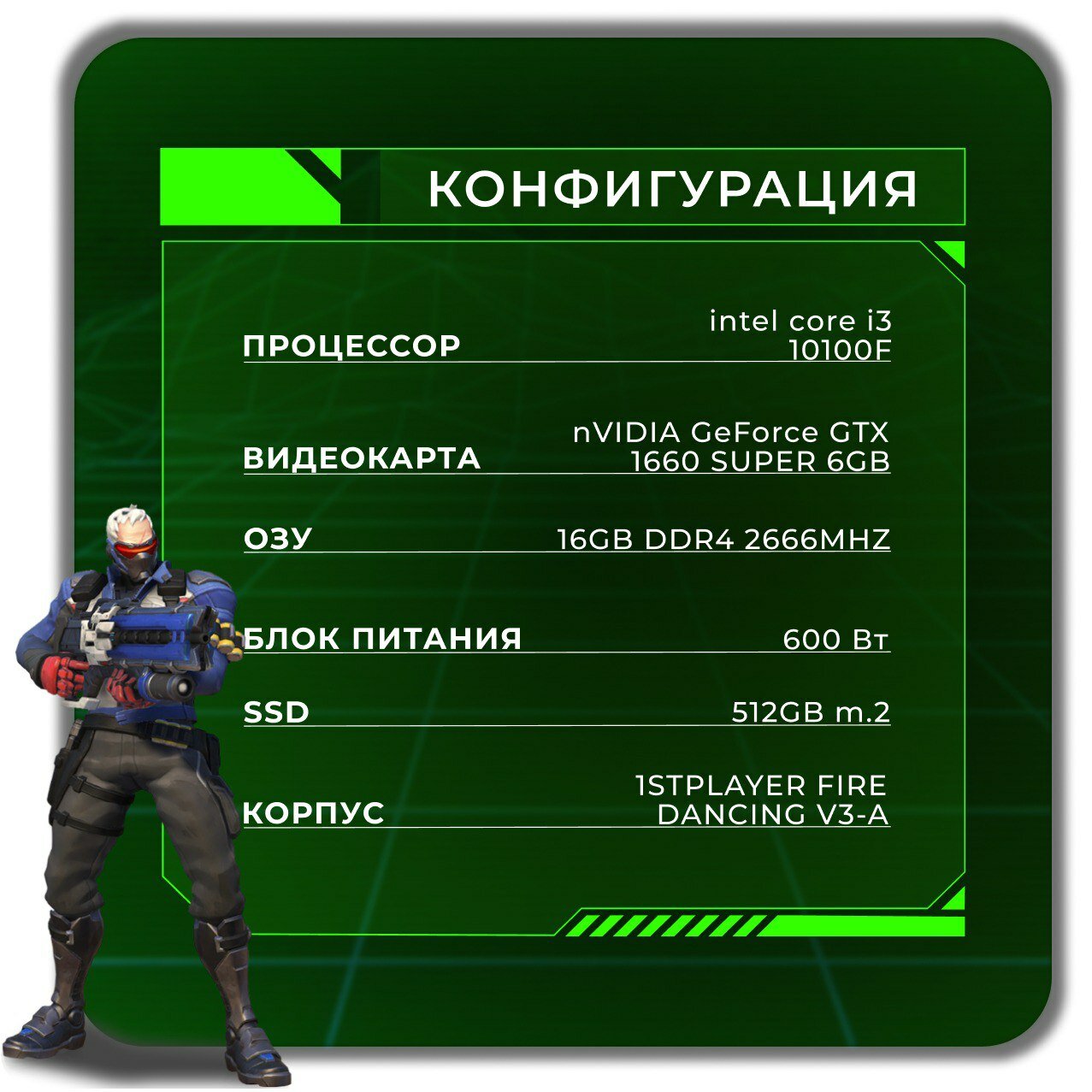 Игровой компьютер, системный блок Intel Core i3-10100F / 16GB RAM / 512GB SSD M.2 / NVidia GeForce GTX 1660 Super 6GB информация: