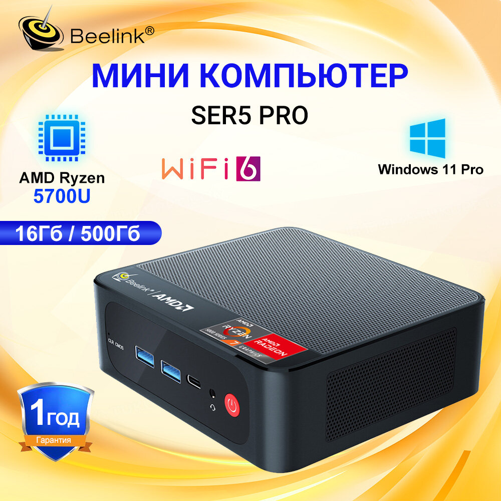 10 цен на Мини ПК Beelink SER5 Pro (AMD Ryzen 7 5700U, RAM 16 ГБ, SSD 500 ГБ WiFi6 BT5.2 Windows 11 Pro Микрокомпьютер),черный
