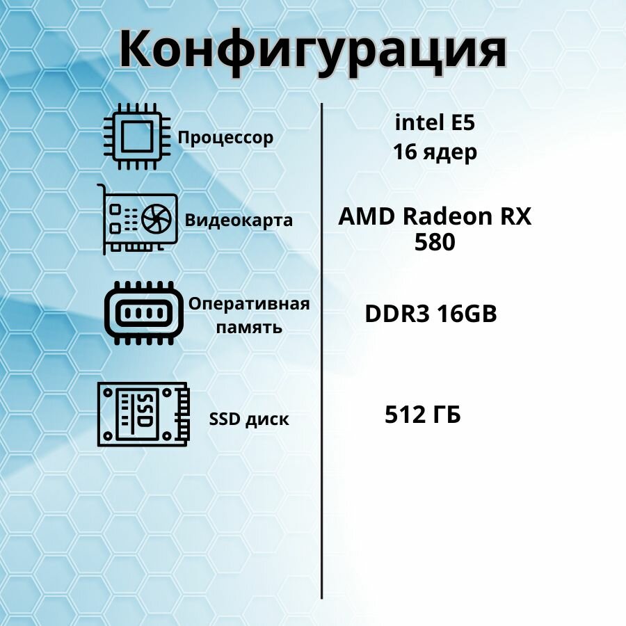 Компьютер Игровой intel i7 16 ядер/RX580-8GB/16GB/SSD-512/Монитор 22' информация: