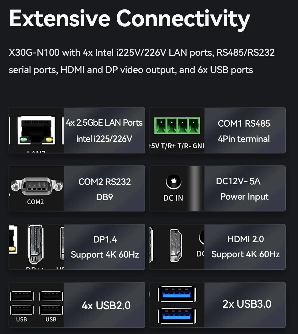 Мини-ПК Helorpc X30-N100 8ГБ 512ГБ 4LAN2COM, 16G RAM 512G SSD, Inter N100 20 226 ₽