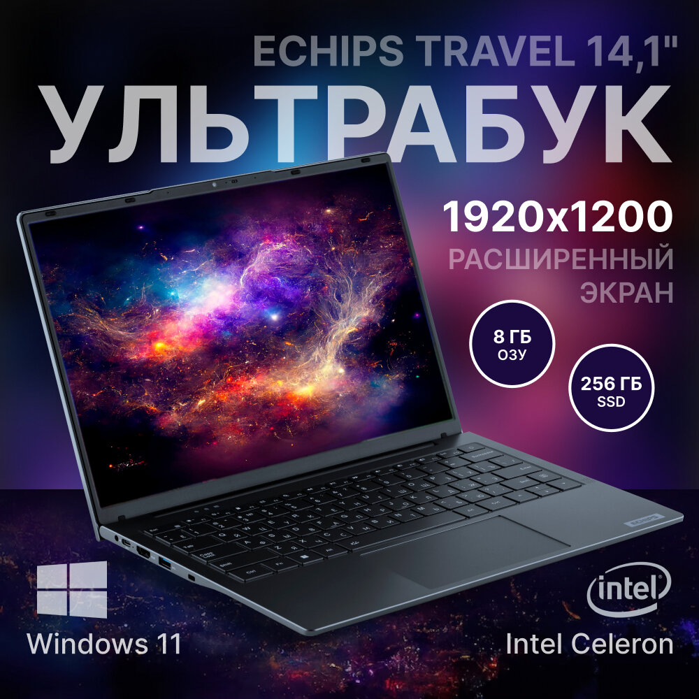10 цен на Ноутбук Echips Travel 14.1" 1920x1200 IPS Intel Celeron N5095 8GB RAM SSD 256GB Win 11 Home