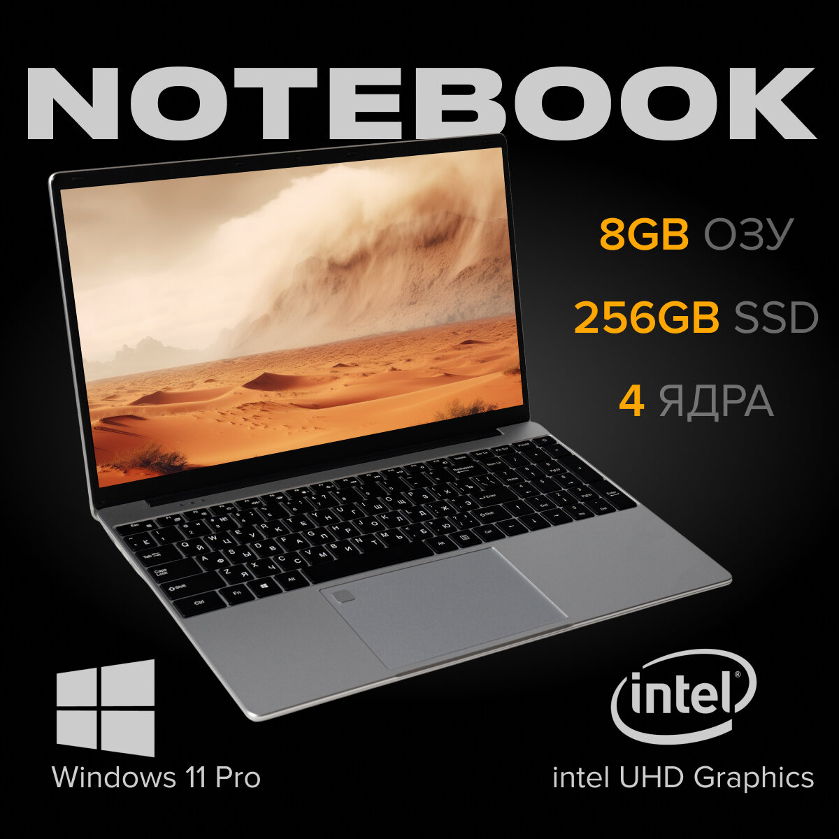 10 цен на 15,6 ноутбук Intel Celeron N5095 (до 2.9 GHz, 4 ядра), RAM 8 GB, SSD 256 GB, Intel UHD Graphics, Русская клавиатура, Windows 11 Pro
