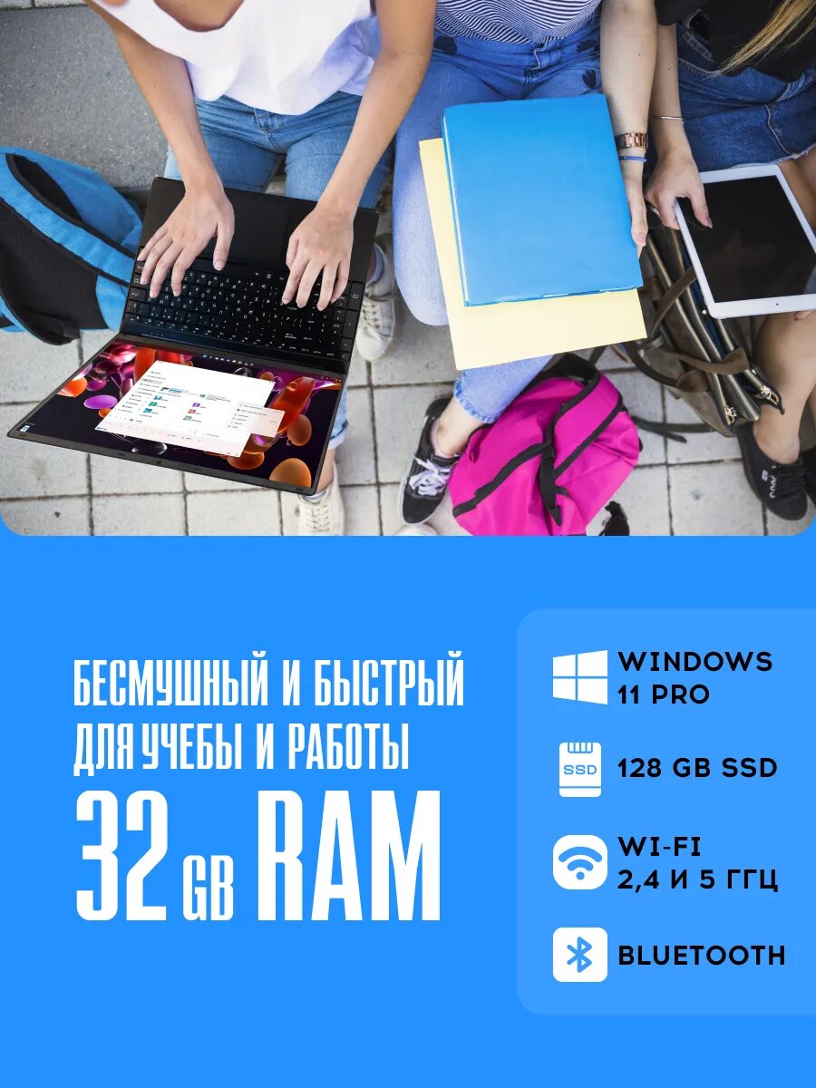 Ноутбук Intel N5095 (до 2.9 GHz), RAM 32 GB, SSD 128 GB, Windows 11 Pro 27 400 ₽