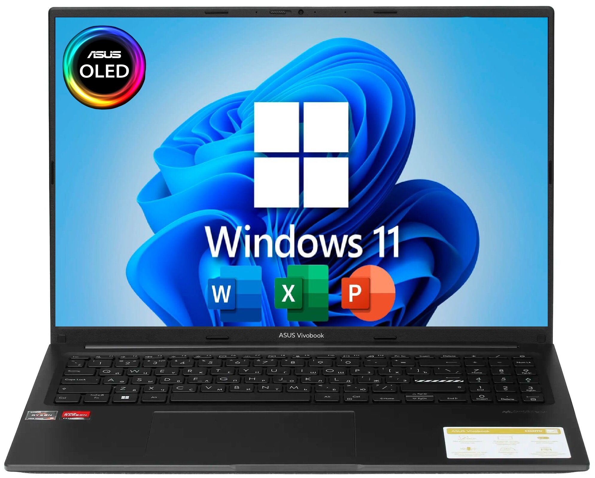 15.6" Ноутбук ASUS VivoBook 15X OLED, AMD Ryzen 5 7530U (6 ядер), RAM 16 ГБ, SSD 1 ТБ, AMD RX Vega 7, Windows 11 Pro + Office 2021, Русская раскладка информация: