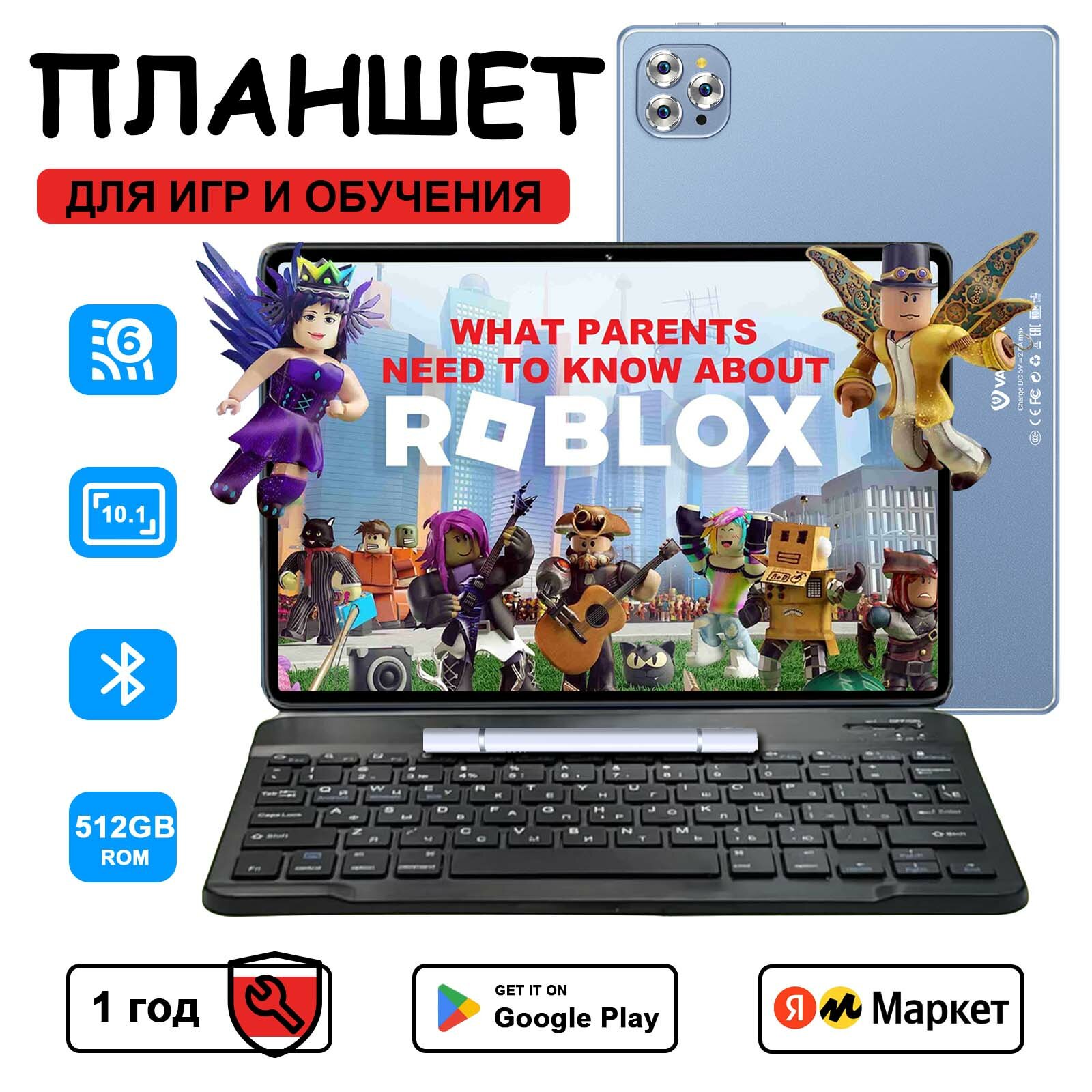 Планшет с клавиатурой VANWIN Pad 5 Air 10.1" ,512GB , планшет андроид стилусом голубой информация: