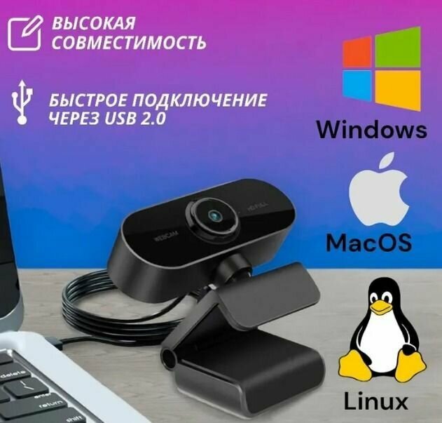 Веб Камера FullHD 1080p для компьютера с микрофоном USB / вебкамера для пк, ноутбука информация: