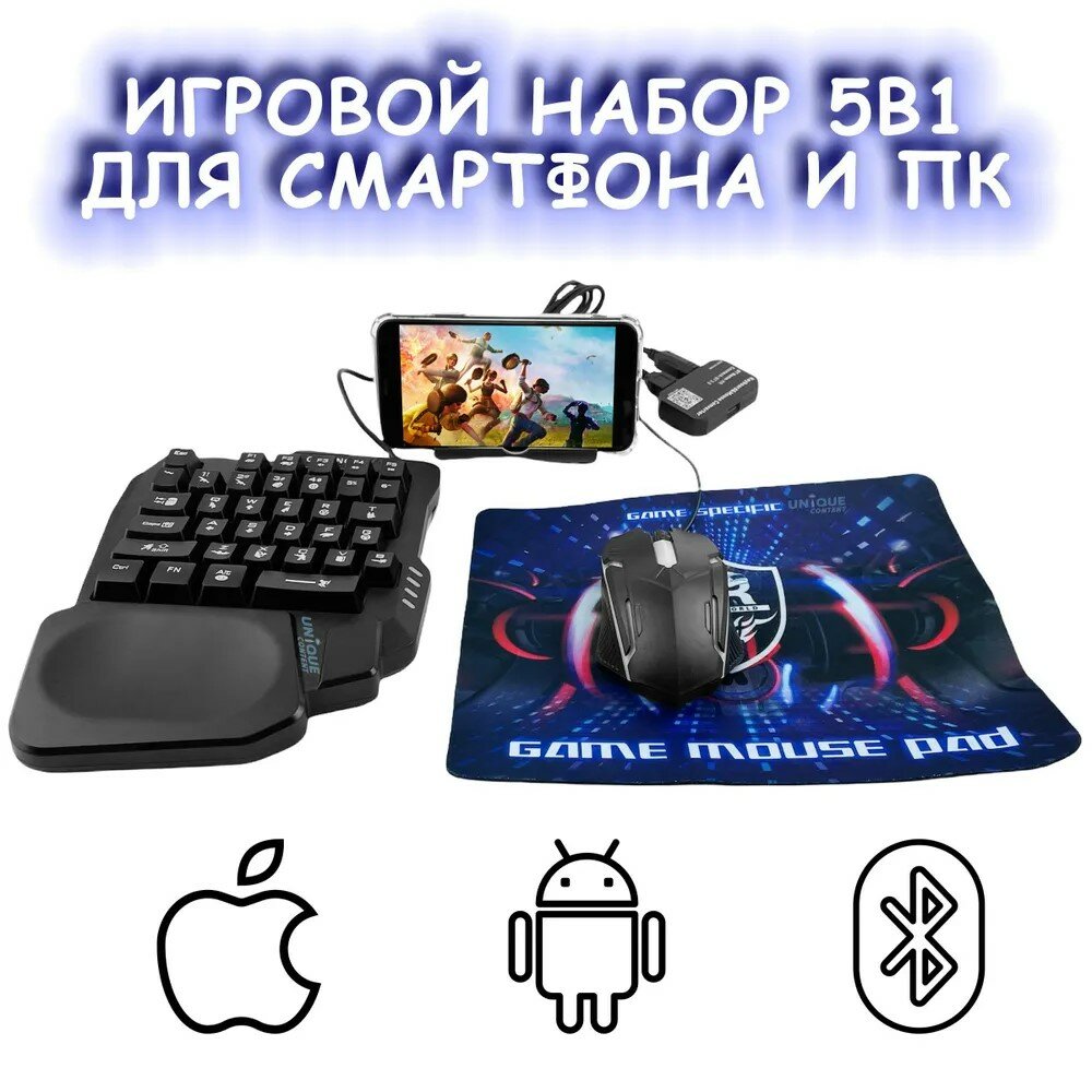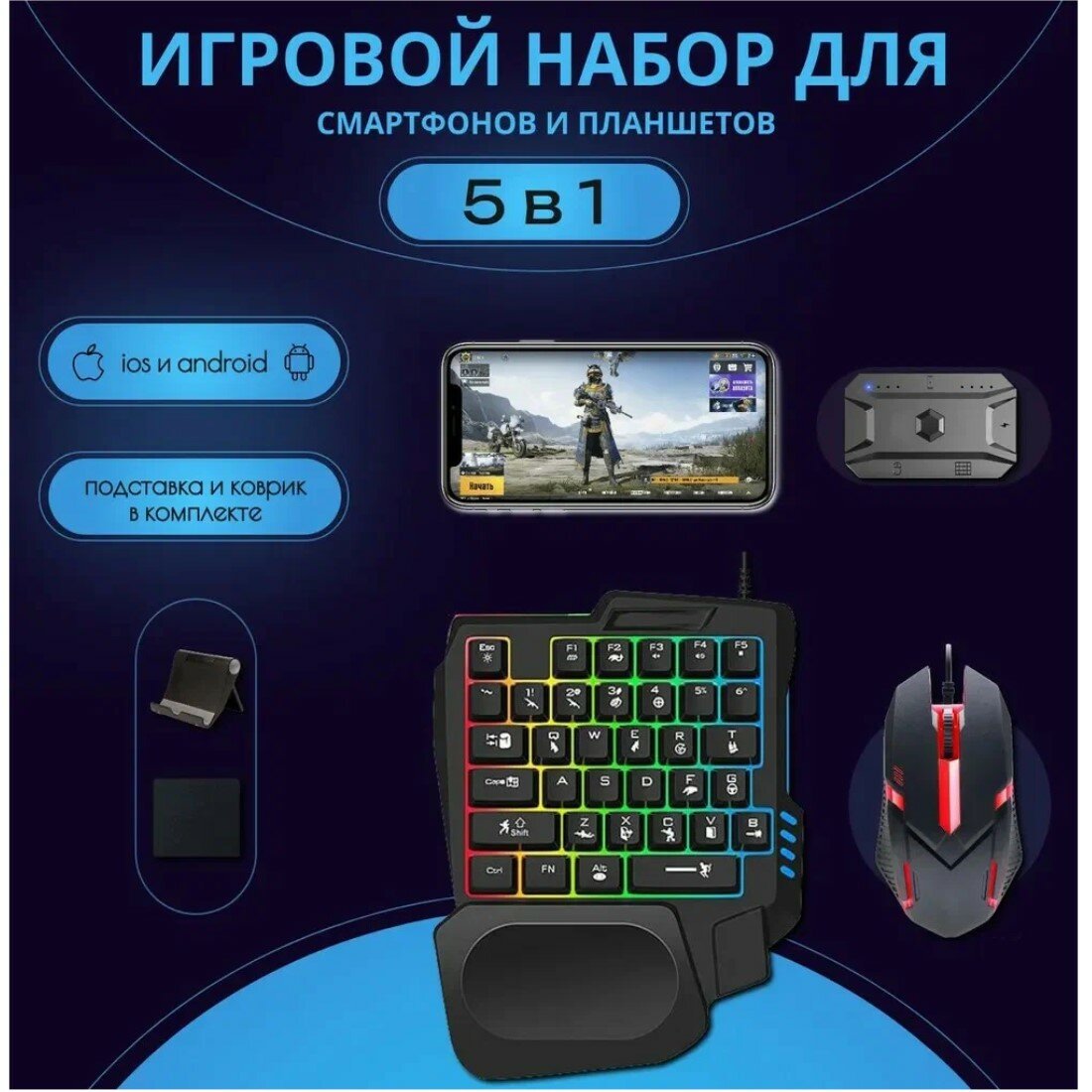 Отзывы на Игровой комплект, игровая клавиатура и мышь комплект, клавиатура для телефона, 5 в 1, RGB подсветка, подставка под телефон, коврик