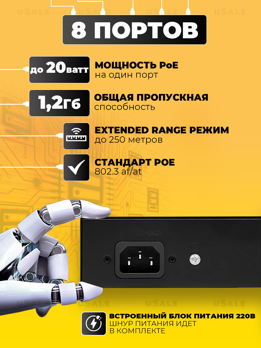 | Дополнительная информация | POE коммутатор 9 портов POE, 2 uplink |