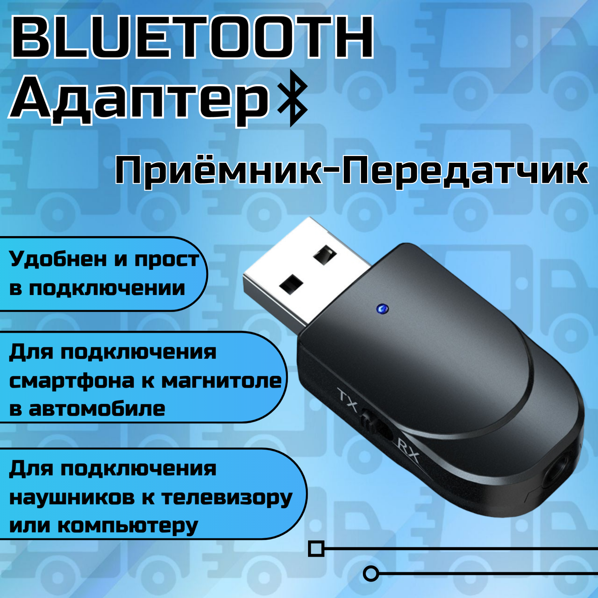 Bluetooth 5.0 аудио адаптер приемник и передатчик KN 330 USB Блютуз 3.5 jack AUX + громкая связь информация: