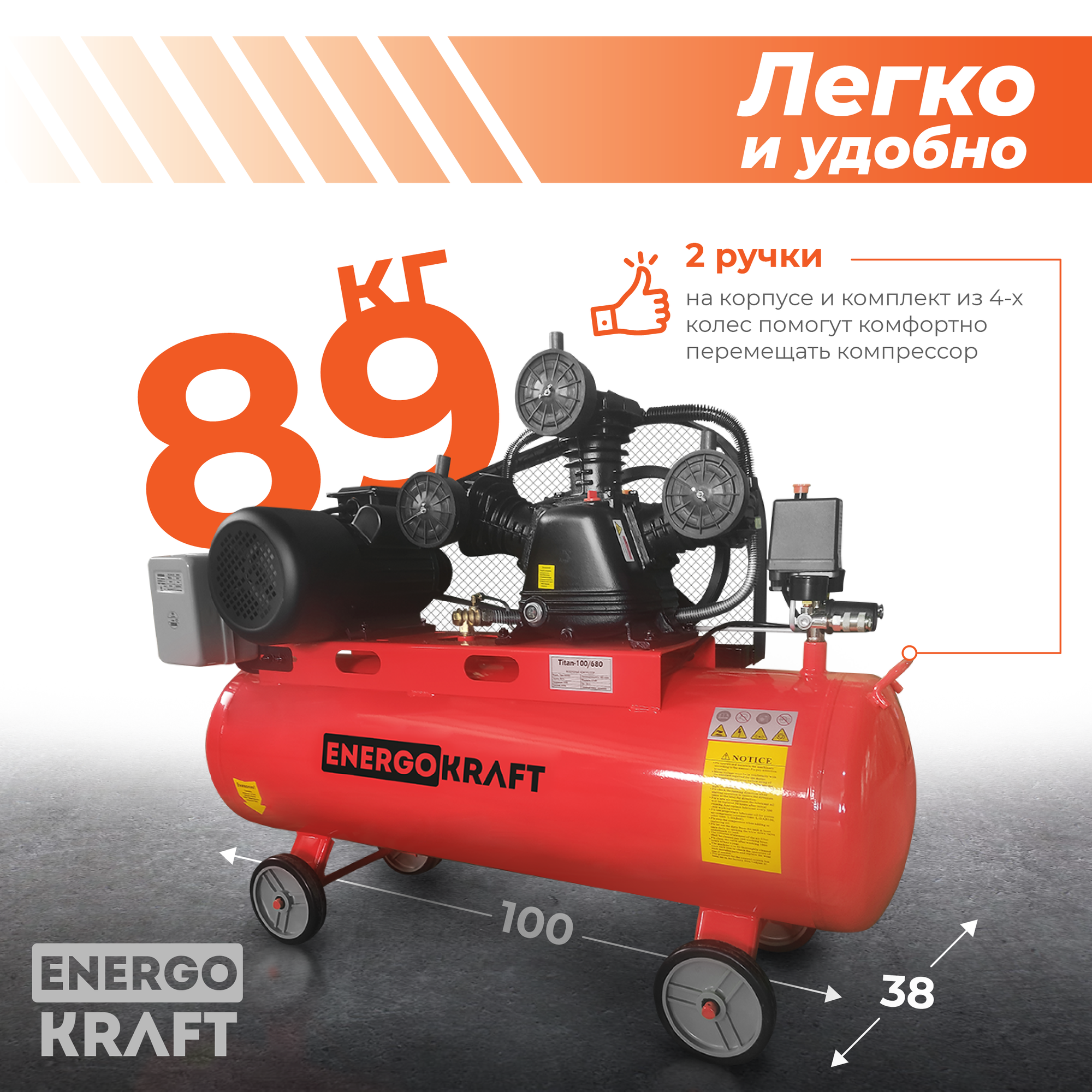 Компрессор ENERGOKRAFT Titan-100/680 ( 3.5кВт, 100л, 680 л/мин) информация: