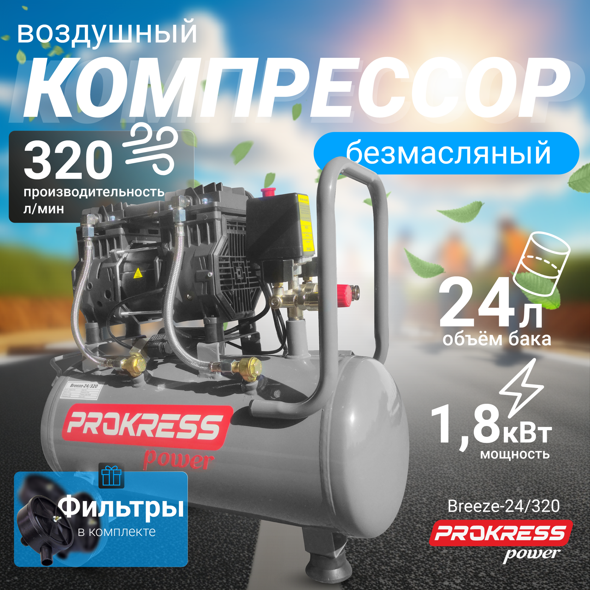 10 цен на Компрессор PROKRESS Breeze 24/320 ( 1,8 кВт, 320 л/мин, бак 24л, 8 атм)