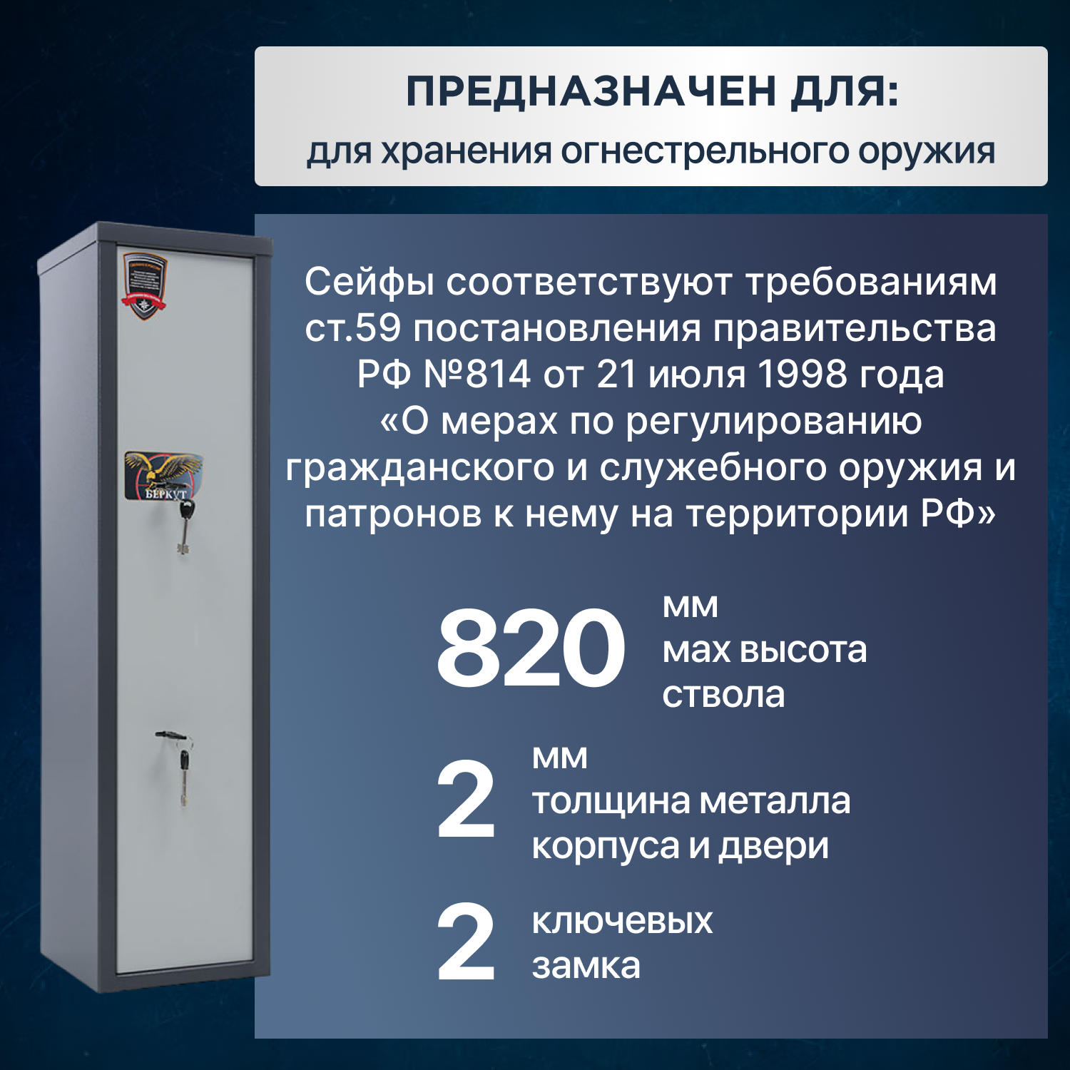 Сейф оружейный AIKO Беркут 1, 2 ствола до 820 мм информация: