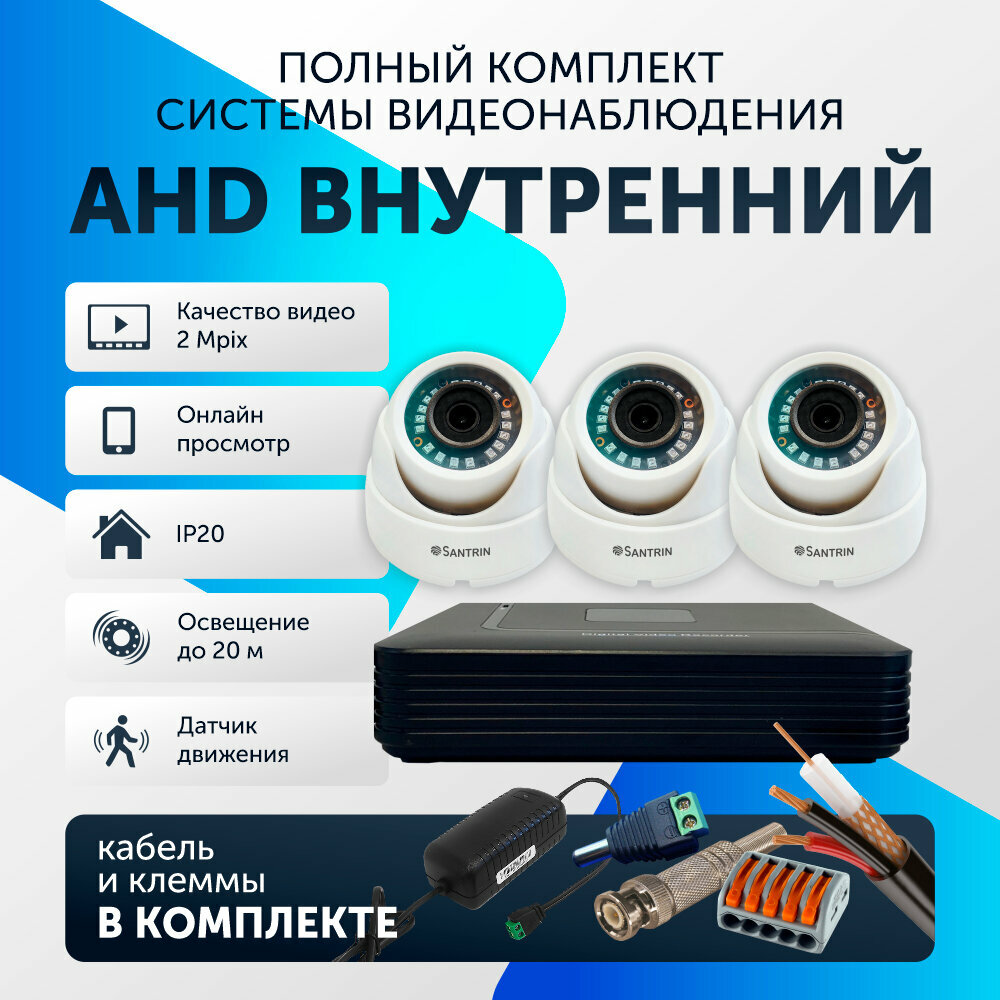 Готовый комплект AHD видеонаблюдения, 3 камеры купольные FullHD 2Mpix информация: