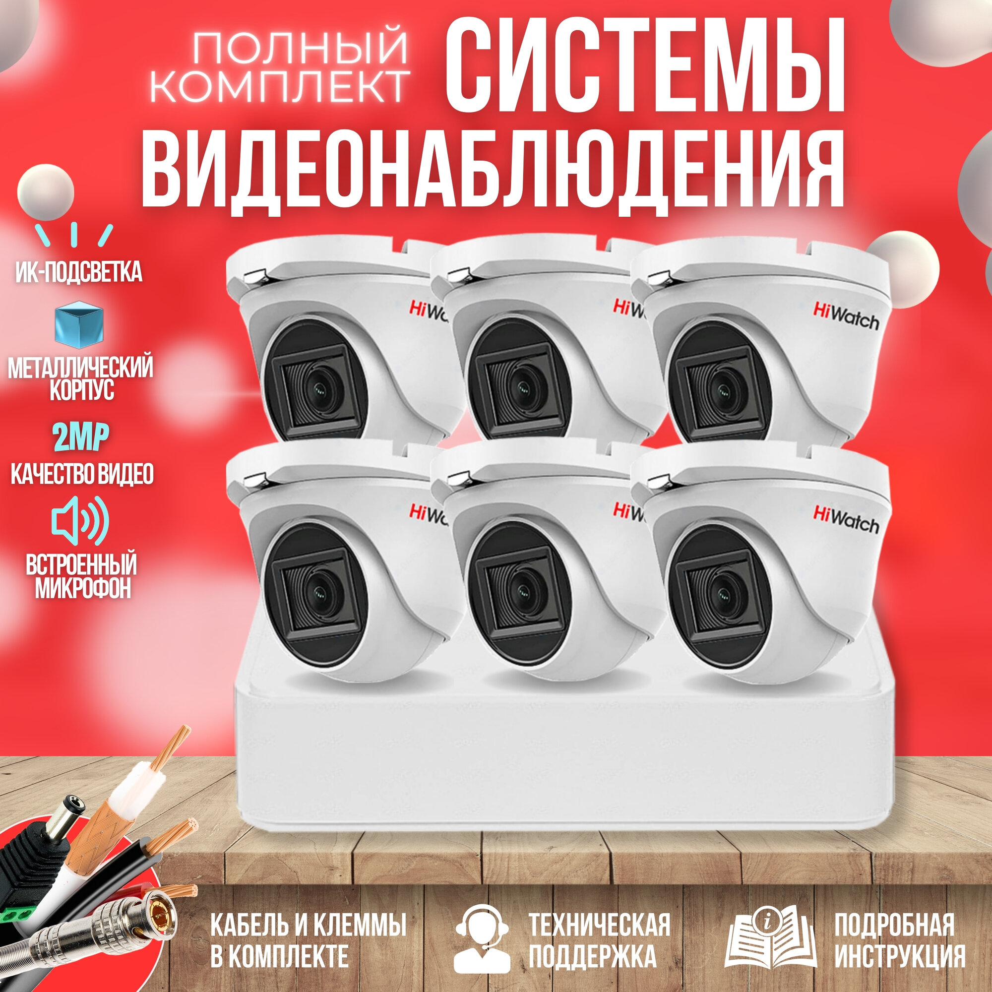 Камера видеонаблюдения с микрофоном 6шт 2MP HiWatch комплект HW-KIT-A62HDM