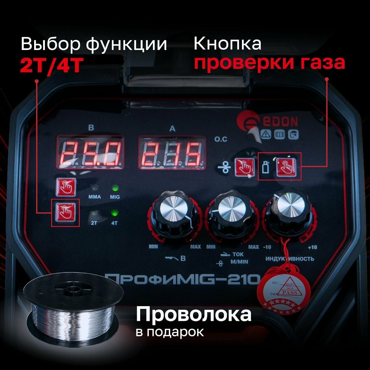 Сварочный аппарат полуавтоматический Edon ПрофиMIG-210 MIG 8,3кВт 20-210А информация: