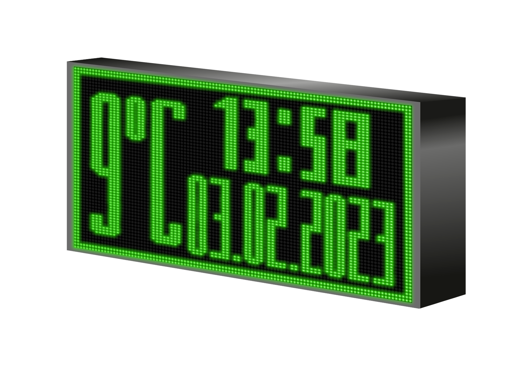 | Отображаемые данные | данные в формате бегущей строки / дата / текстовые данные / текущее время |