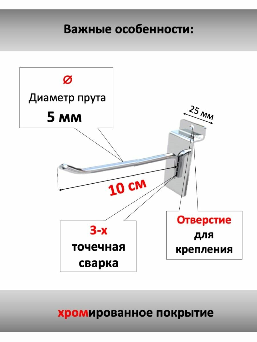 Крючки для экономпанели, хром, 10шт - 10 см. информация: