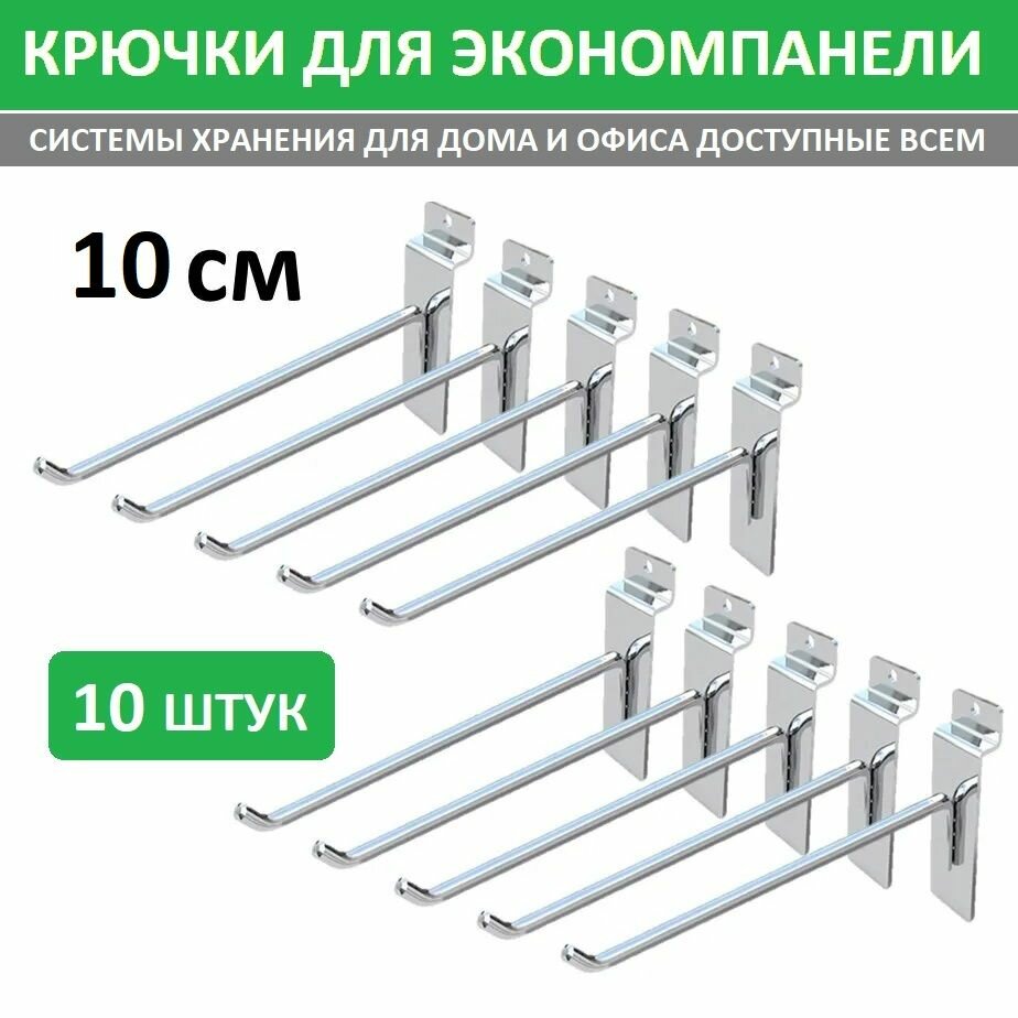 10 цен на Крючки 10 см для эконом-панелей металлические, 10 шт, хром, (толщина 4,5-5мм)