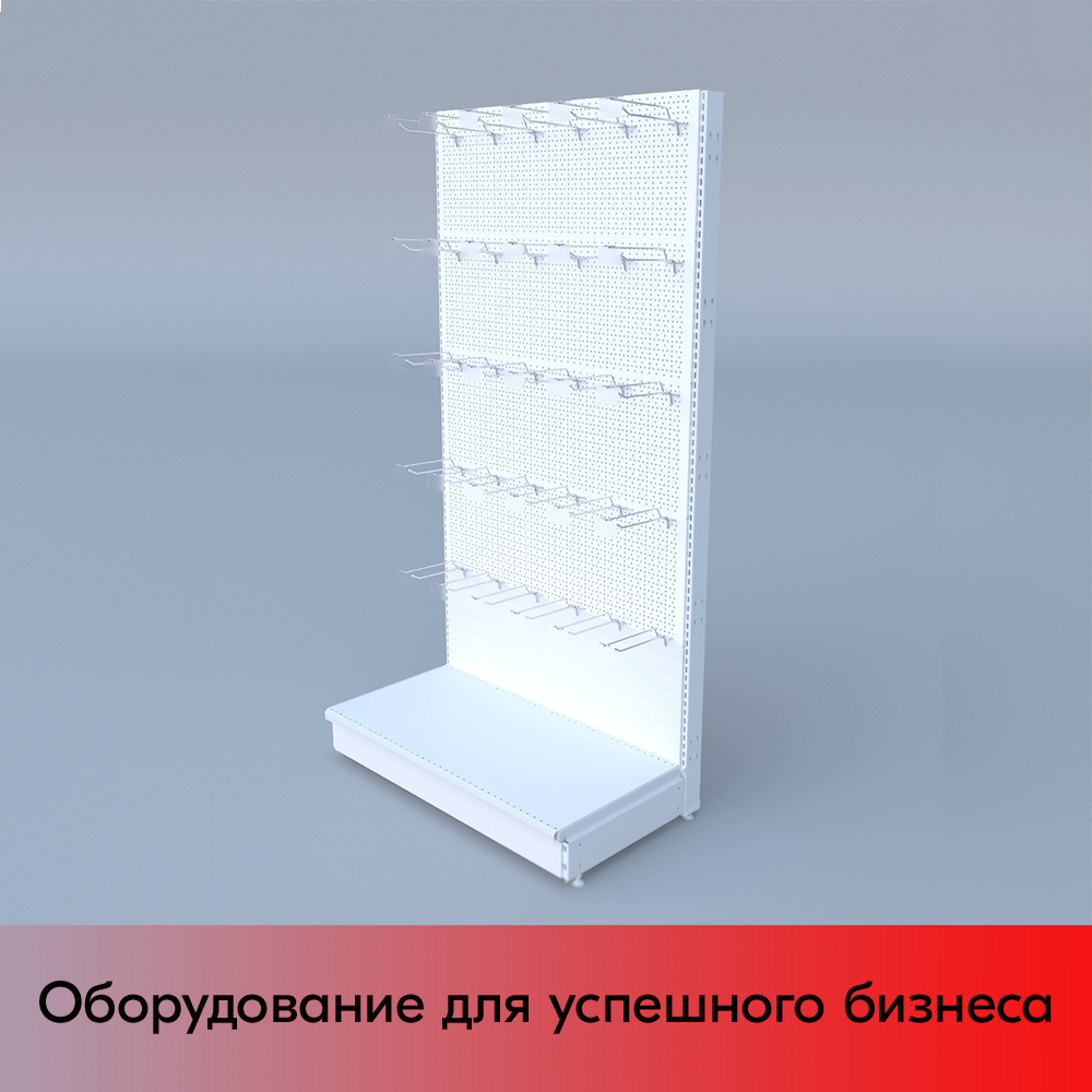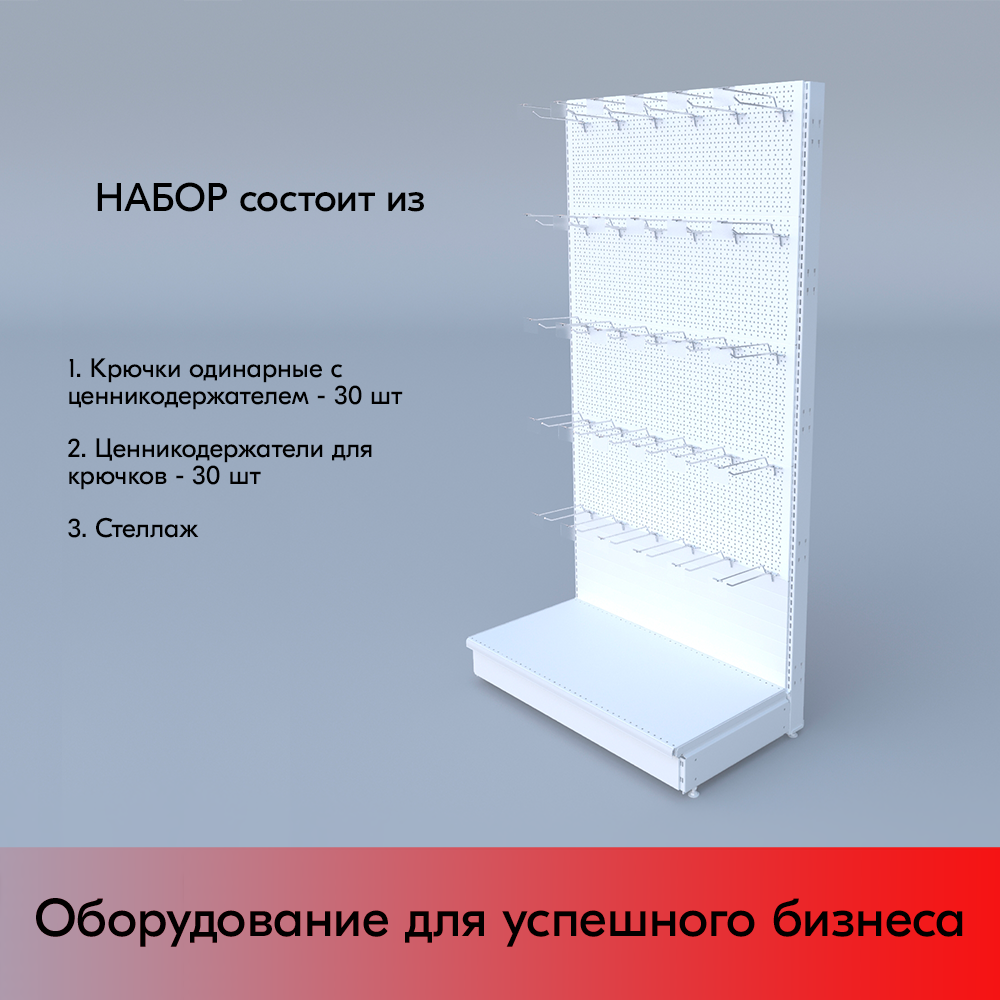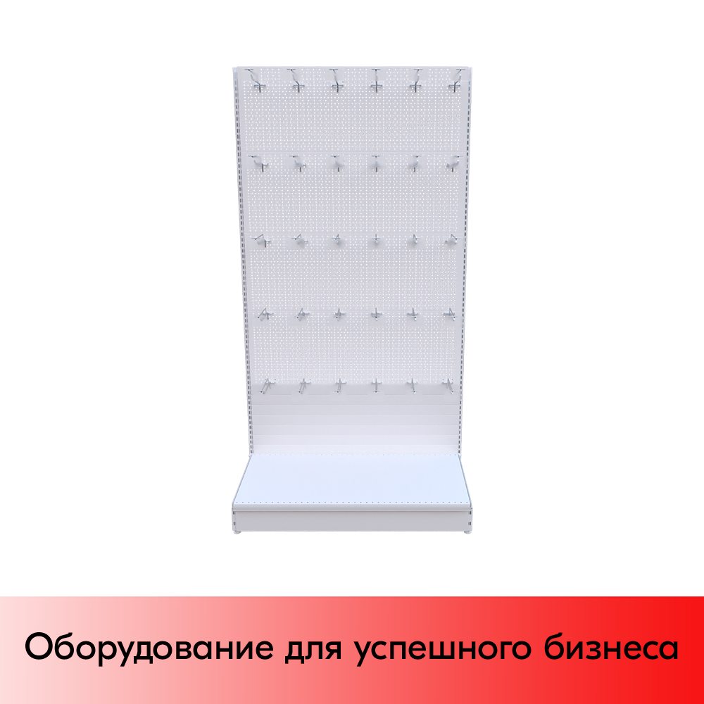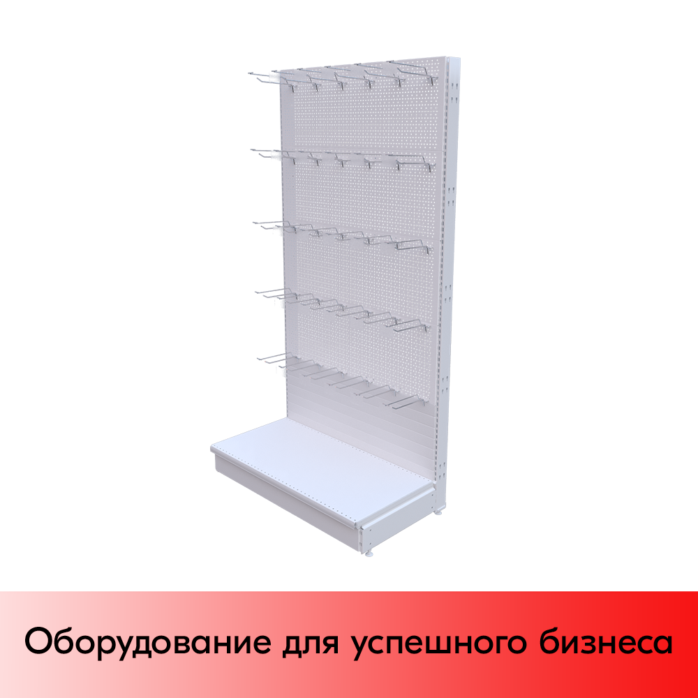 Набор Стеллаж 25/70 перфорированный пристенный 1900х1000х500, 1 полка + плинтус + 30 крючков, RAL9016, Белый информация: