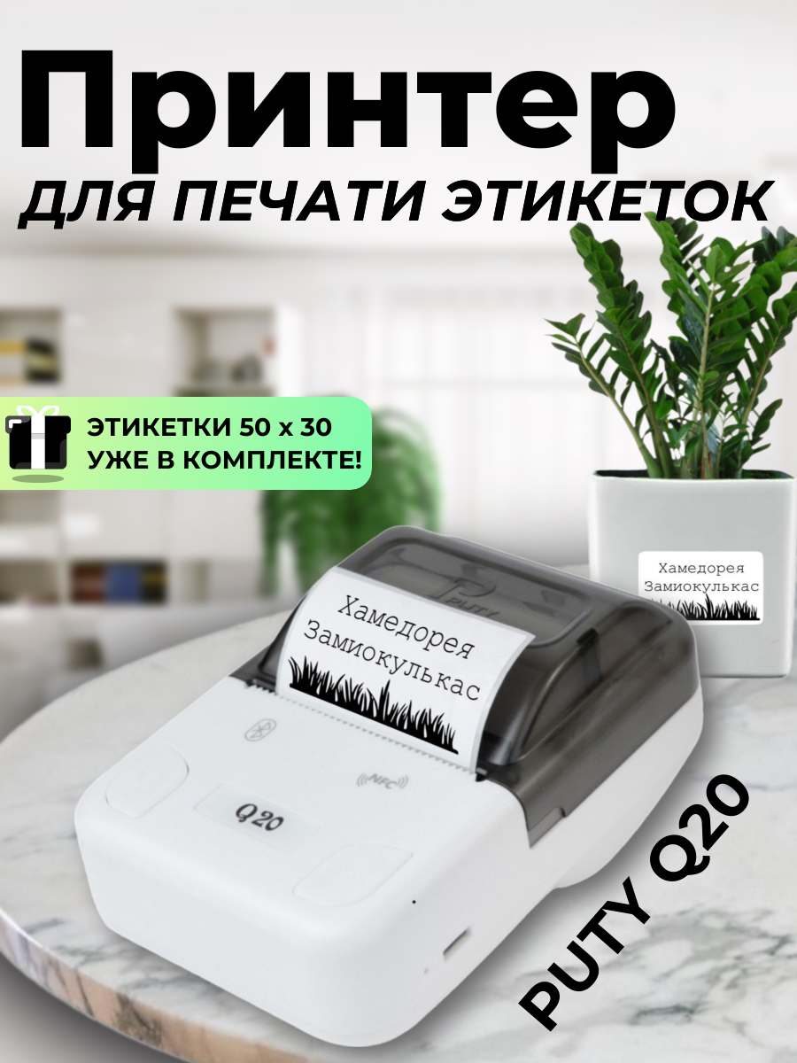 Принтер для печати этикеток и наклеек Puty Q20, белый (Q20white) информация: