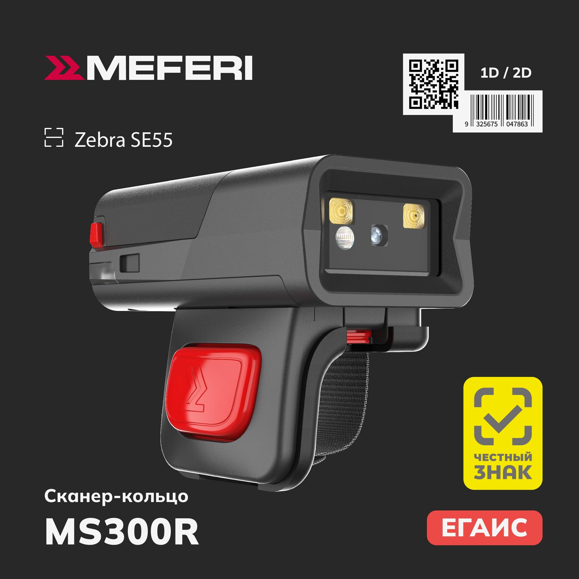 Сканер кольцо штрих-кодов Meferi MS300R / MS300R-WS5ANSST / Zebra SE55 информация: