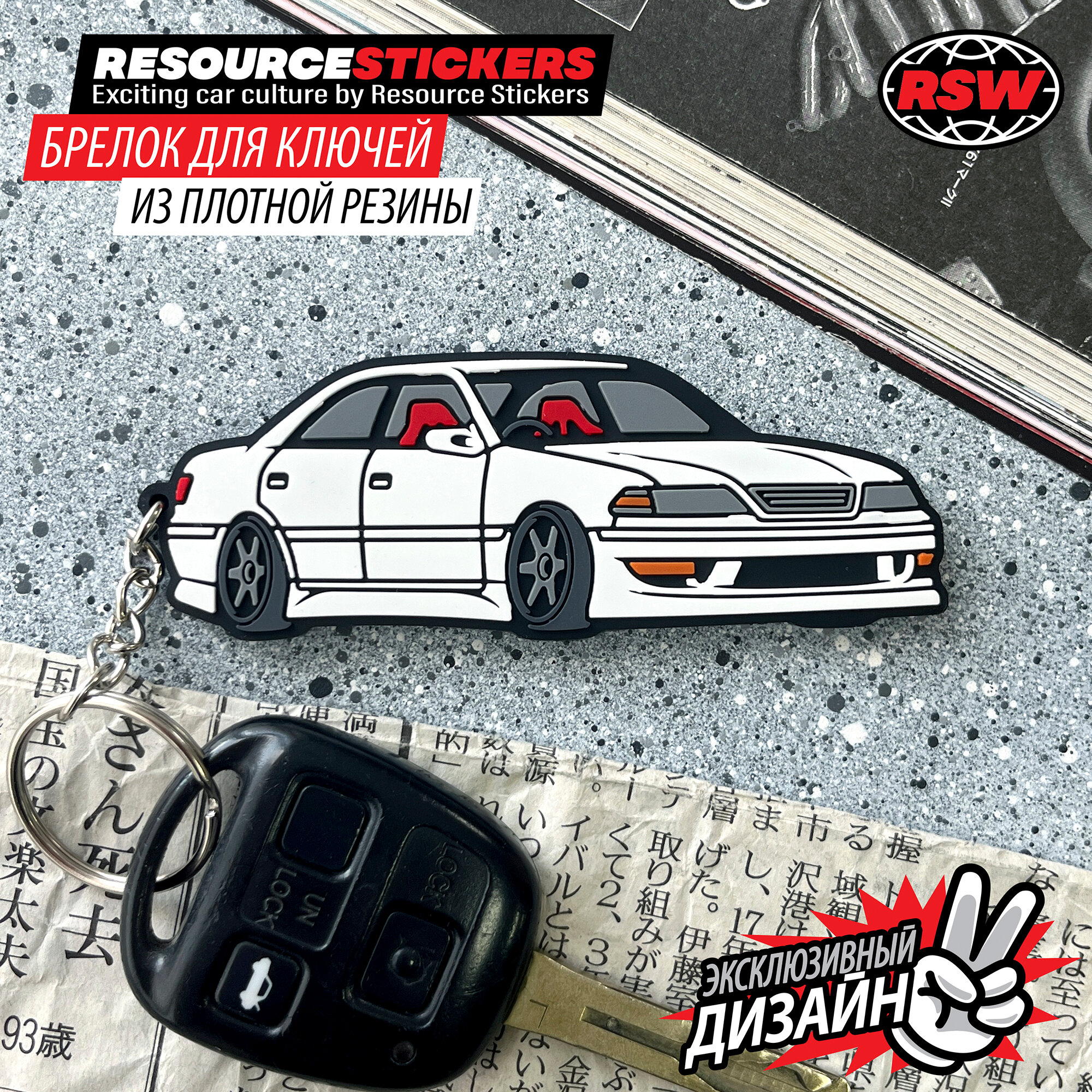 Брелок для ключей, Toyota Mark 2 JZX 100, белый ПВХ 9х3,3 / Resource Stickers 485 ₽