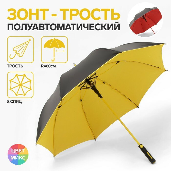 Зонт - трость полуавтоматический «Однотон», 8 спиц, R = 60 см, цвет микс информация: