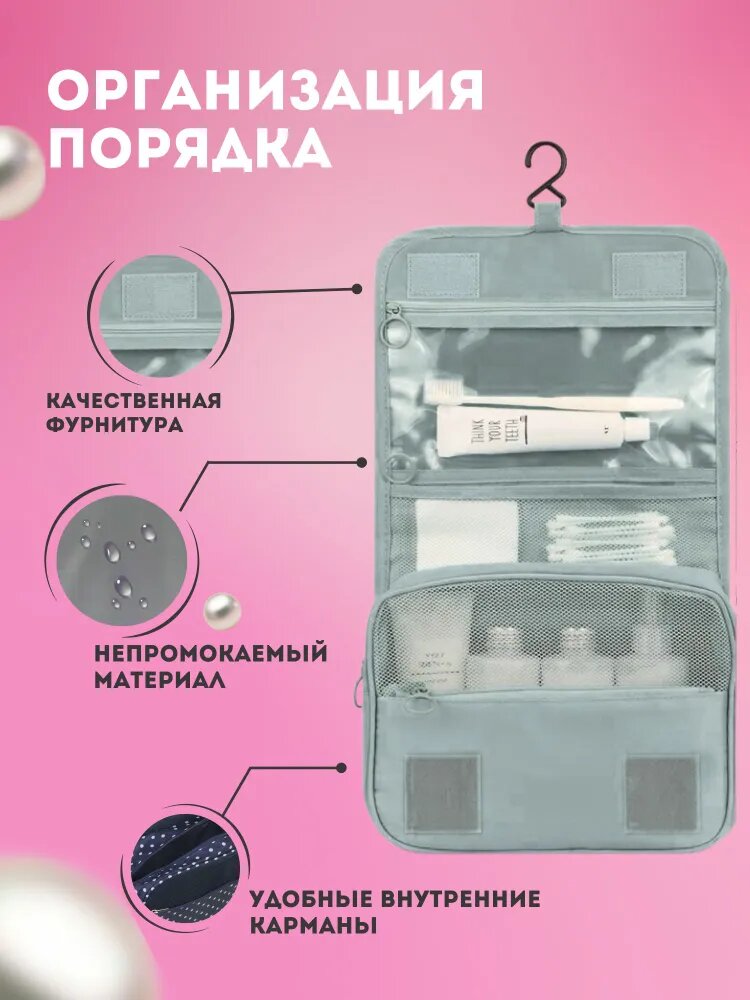 Отзывы на Косметичка TRAVEL на молнии, 10х18х24 см, ручки для переноски, крючок для подвешивания, водонепроницаемая, серый
