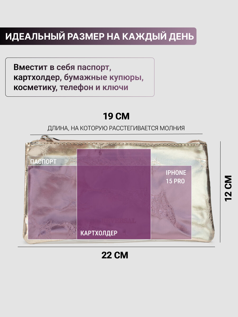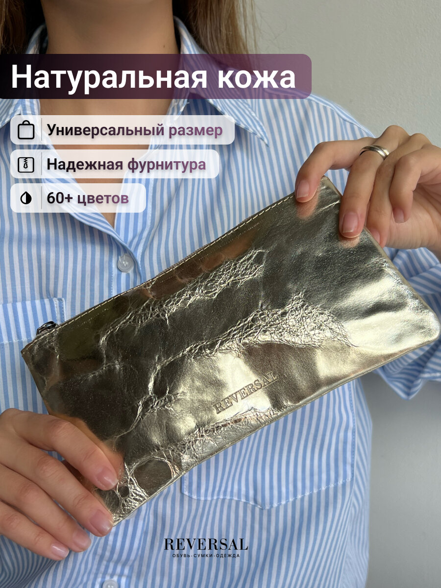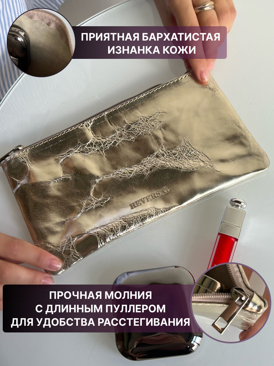 Косметичка натуральная замша на молнии плоская,Reversal,8856R_Белый-золото информация: