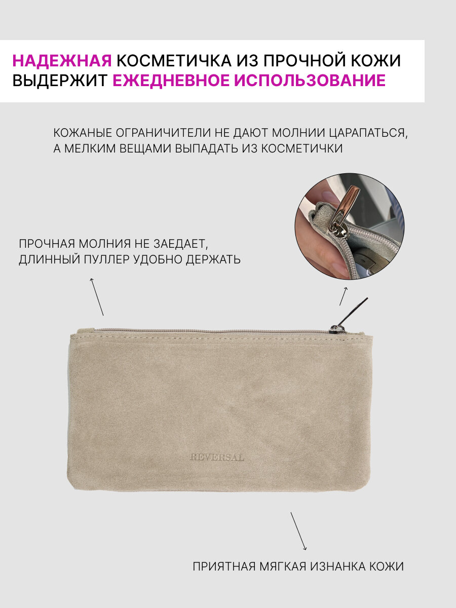 10 цен на Косметичка натуральная кожа на молнии клатч замшевый , Reversal , 8856R_Пломбир-замша