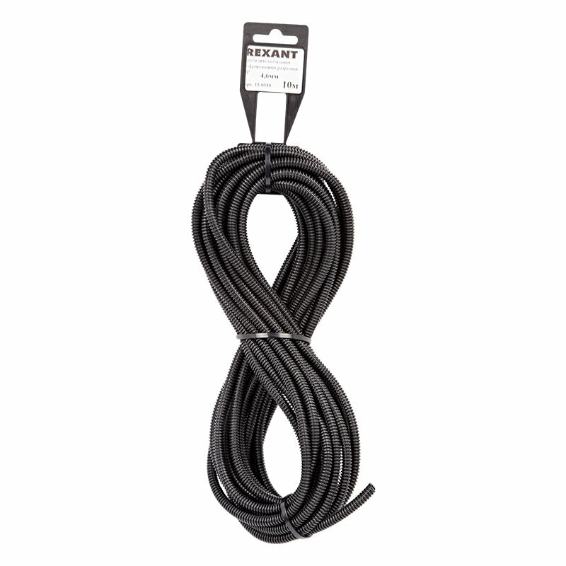 Труба автомобильная гофрированная Rexant, Ø 4.6 мм, разрезная (бухта 10 м) {15-0510}
