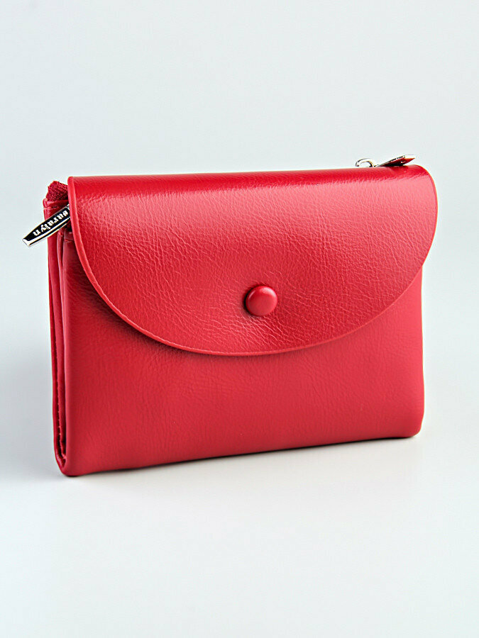 Кошелек женский, экокожа, гладкая фактура, на кнопке, отделения для карт и монет, внешний карман, красный информация:
