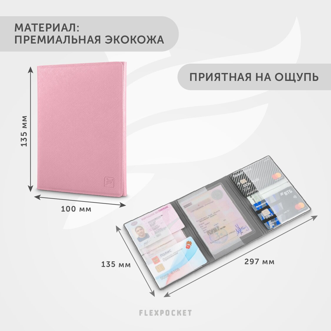 Обложка для автодокументов, водительских прав, удостоверения / Автодокументница, Экокожа, цвет Розовый информация: