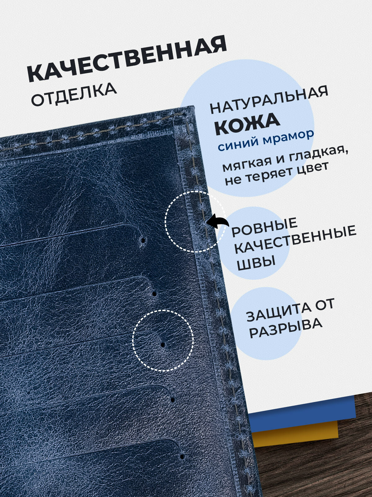 Обложка на паспорт из натуральной кожи, синий информация: