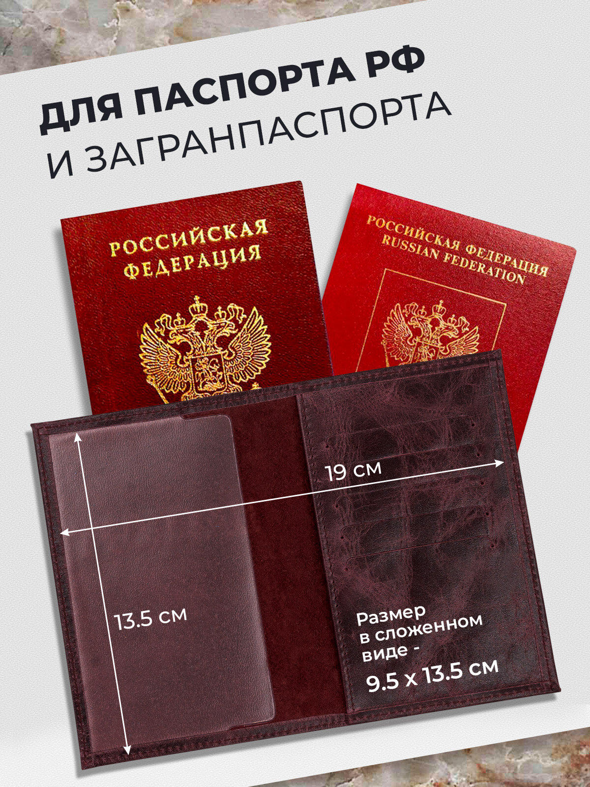 Обложка на паспорт из натуральной кожи, баклажановый информация: