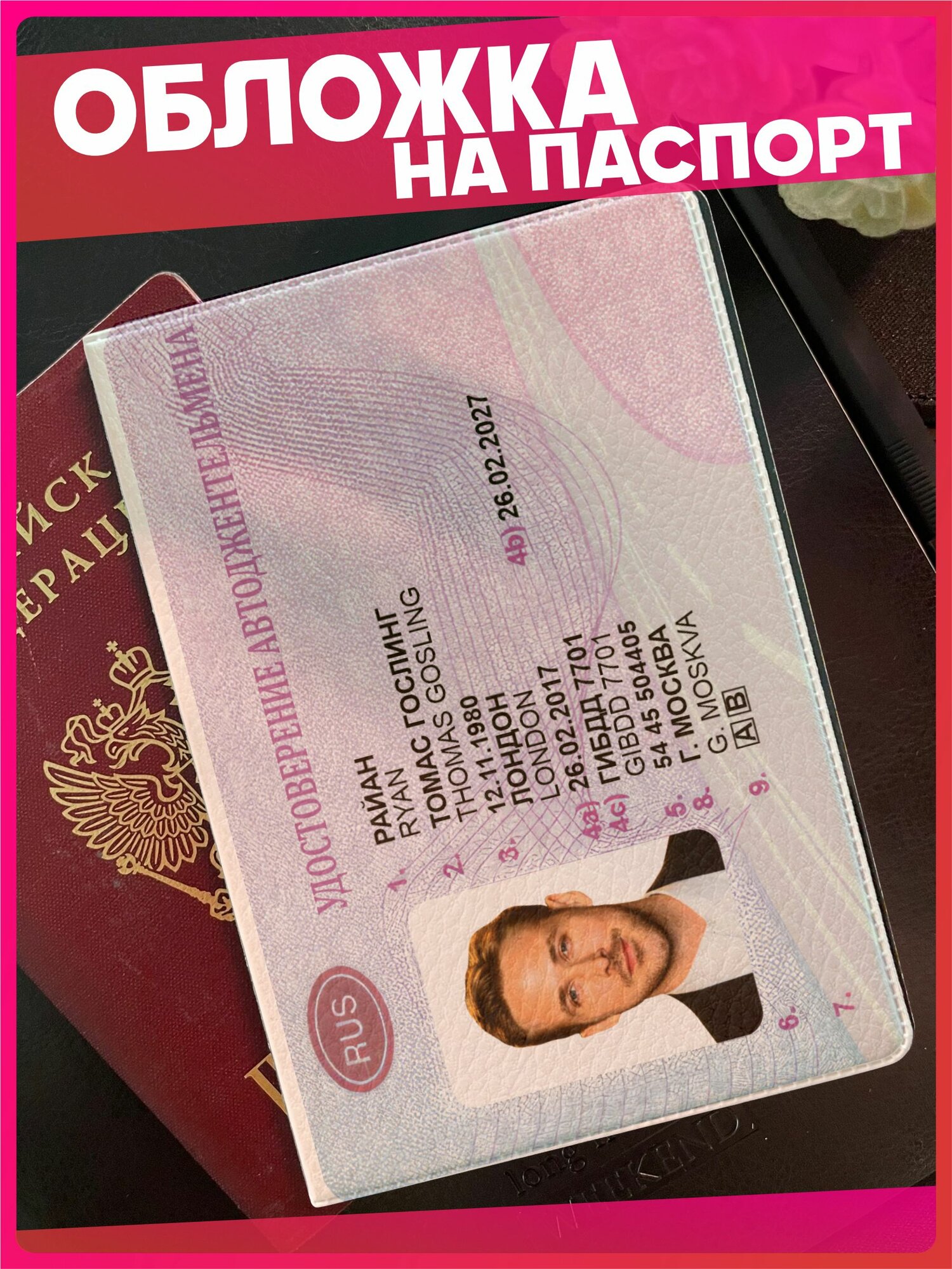 Обложка на паспорт с принтом Райан Гослинг права водительские информация: