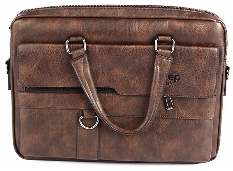 Портфель мужской кожаный для документов А4 Jeep Buluo коричневый, портфель мужской через плечо, сумка портфель мужская кожаная, сумка-портфель мужская