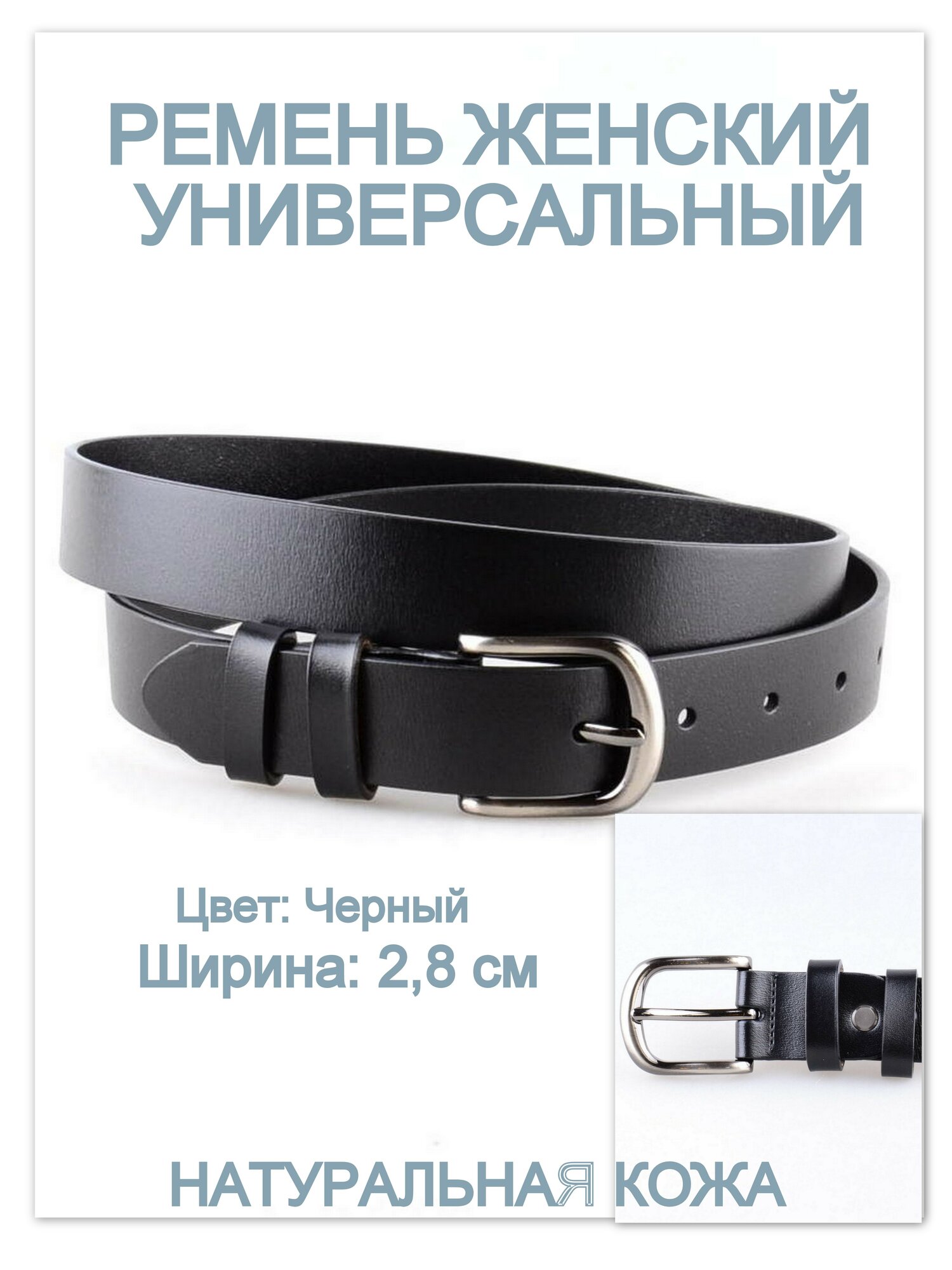 10 цен на Ремень женский кожаный 3 см черный РЖУК30-41-110