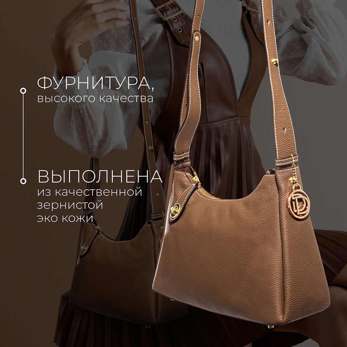 Сумка женская кожаная через плечо (темно-бежевая) Dayona Dasconi с плечевым ремнем кросс-боди информация: